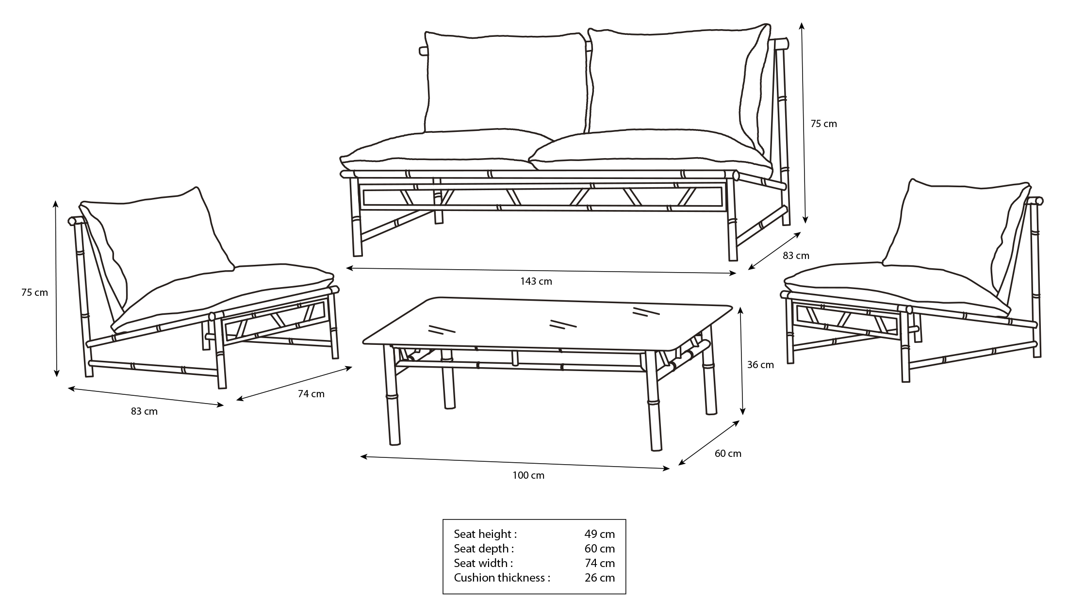Flot loungesæt bestående af 1 bord, 1 sofa og 2 stole. Sættet egner sig perfekt til hyggelige sommeraftener i haven sammen med venner eller familie, og passer ind på enhver terrasse!