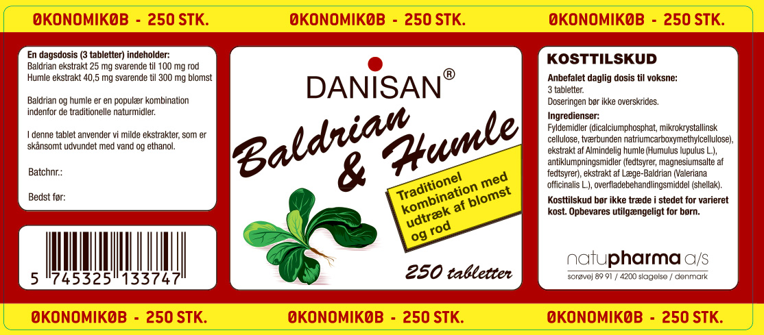 | Ingredienser | Fyldemidler (dicalciumphosphat, mikrokrystallinsk cellulose, tværbunden natriumcarboxymethylcellulose), ekstrakt af Almindelig humle (humulus lupulus L.), antiklumpningsmidler (fedtsyrer, magnesiumsalte af fedtsyrer), ekstrakt af Læge-Baldrian (valeriana officinalis L.), overfladebehandlingmiddel (shellak). |