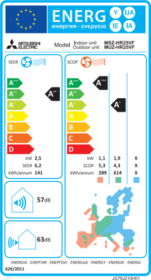 58 m2 - SCOP: 4,3 - SEER: 6,2