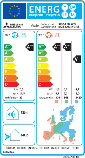 Mitsubishi LN35 HERO er det nyeste bud på en varmepumpe med en høj energieffektivitet (energimærke A+++). Med en SCOP værdi på hele 5,1 er varmepumpen mere end 5 gange så energieffektiv, som en traditionel el-radiator. En unik funktion er Night Mode hvilket betyder, at lydniveauet for udendørsenheden reduceres med så meget som 3 dB, hvilket gør den næsten lydløs. Dette gør Mitsubishi LN35 til en af de mest lydsvage varmepumper.