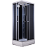 Rondo kabine i 5mm gråtonet sikkerhedsglas. Dertilhørende kraftige aluminiumsprofiler. Der indgår afløb samt flexslange, og med skydedøre inklusiv magnetliste, som gør døren nem at lukke.